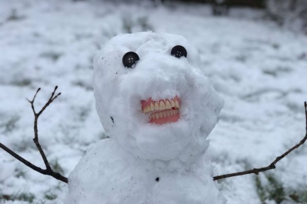 “Meanwhile in the house, I was looking for buttons for the snowman’s eyes when I found a wash bag with all my grandmother’s old teeth from throughout the years.”