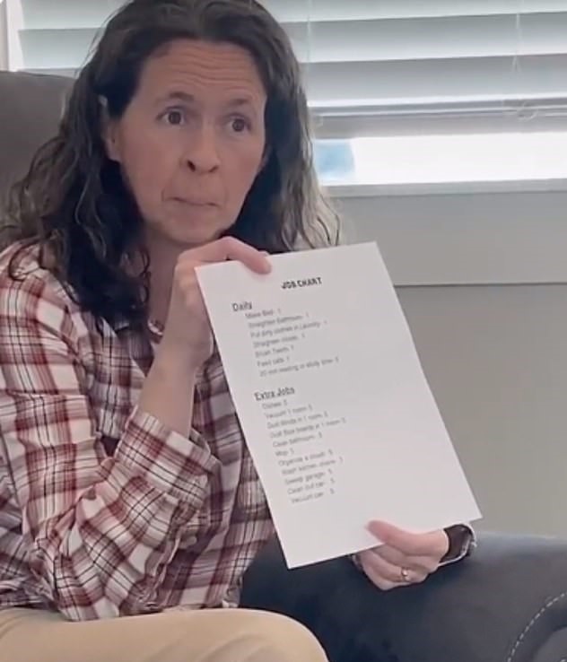 The mum then showed her list of chores, which consist of daily obligations and additional tasks, to her kids.