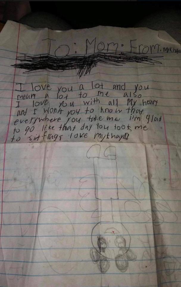 White wrote on Facebook, “Mykhayla wrote the letter to her mom and her mom kept the letter with her always in her wallet,”