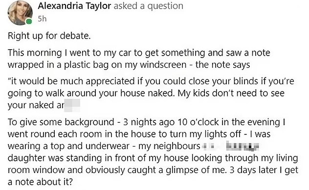 After receiving the controversial note, however, Alex wasn’t ready to back down knowing that her neighbors are staring into her house rather than minding their own business.