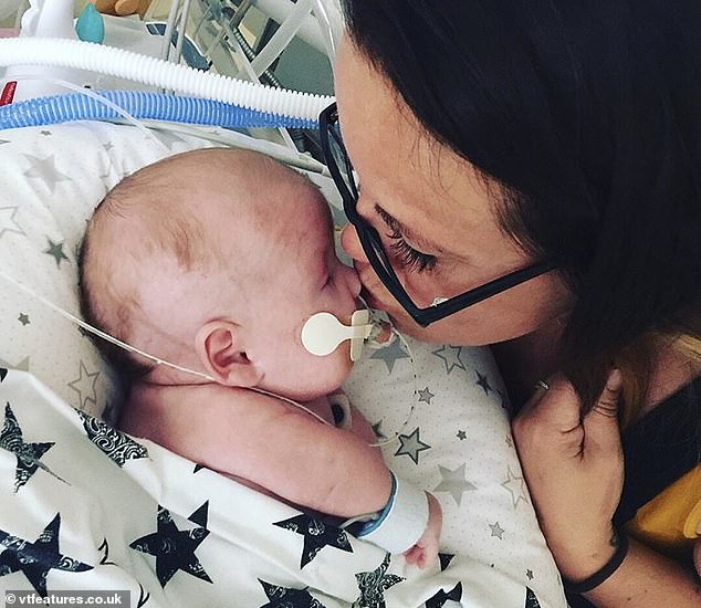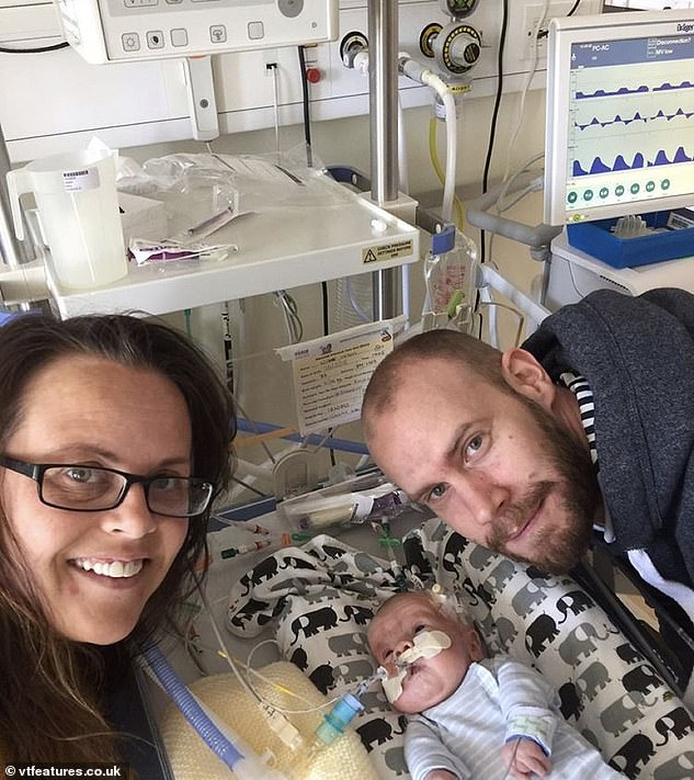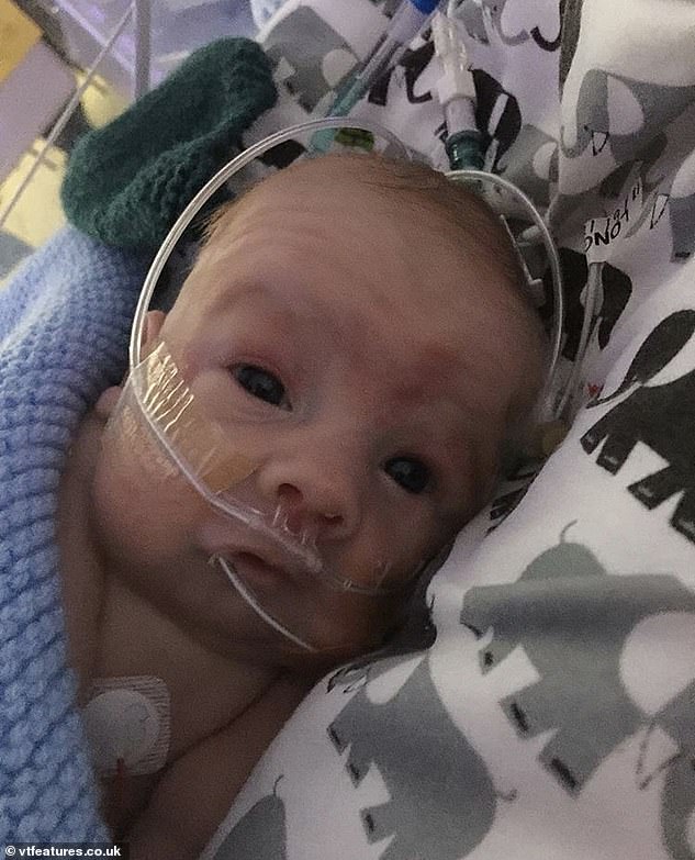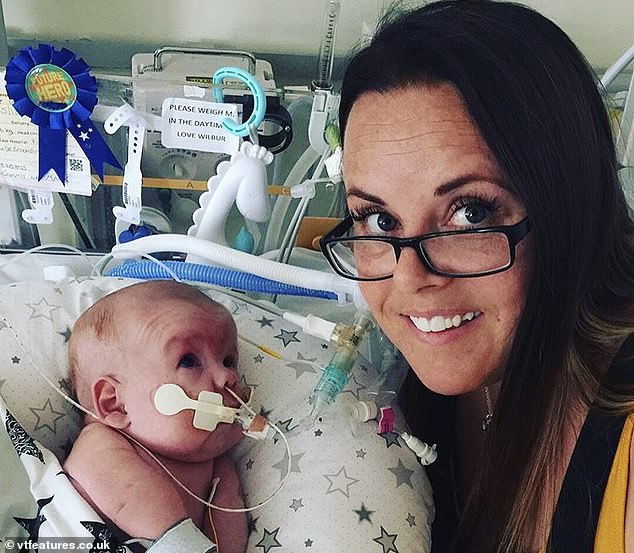 The newborn was delivered at 32 weeks following an emergency Caesarean Section when she developed pre-eclampsia. Medics took Wilber to NICU for life support when he didn’t make any attempt to breathe.