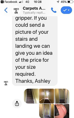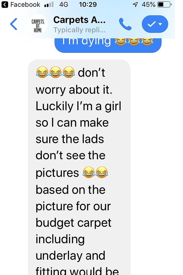 “I’ve messaged a company for a price for a carpet on my stairs and landing, he’s asked me to send pics I’m absolutely mortified. Make sure u check what u click (sic),” she wrote.