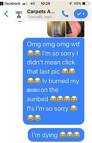 “I looked and messaged them ‘oh my god, I didn’t mean to send that I’m so so sorry, I’ve burned my bum on a sunbed.’