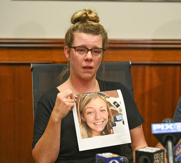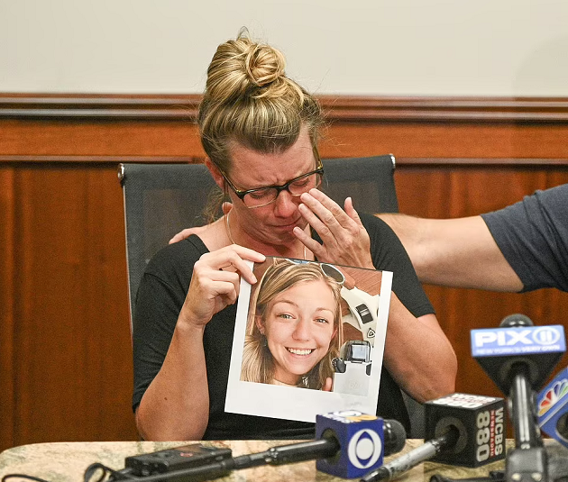 The tearful mother, Nicole Schmidt from Long, Island, New York, gave a heartbreaking interview to reporters as she held a photo of Gabby Petito.