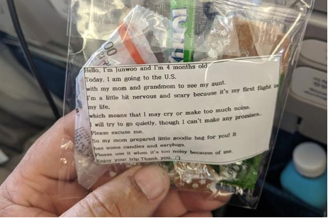 Recently, a mother who boarded the flight from Seoul, South Korea prepared a total of 200 goodie bags for fellow travelers because she had affirmations about her baby taking center stage on the flight.