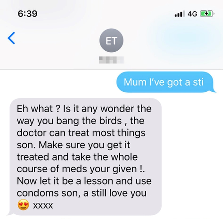 The mother ended her message with a piece of advice: “Now let it be a lesson and use condoms son, a still love you xxx”