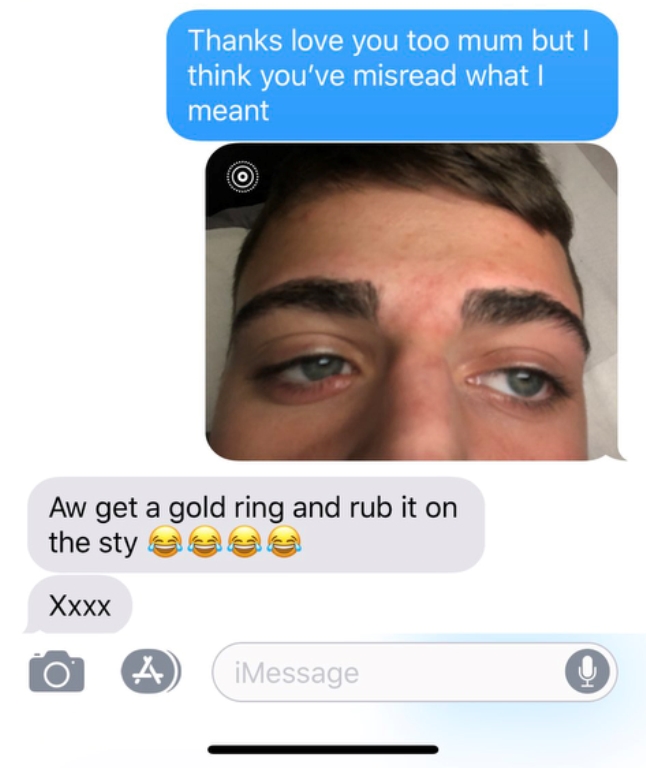 When he texted his mother to let her know about his sty, he accidentally spelled it ‘sti.’