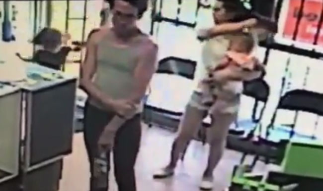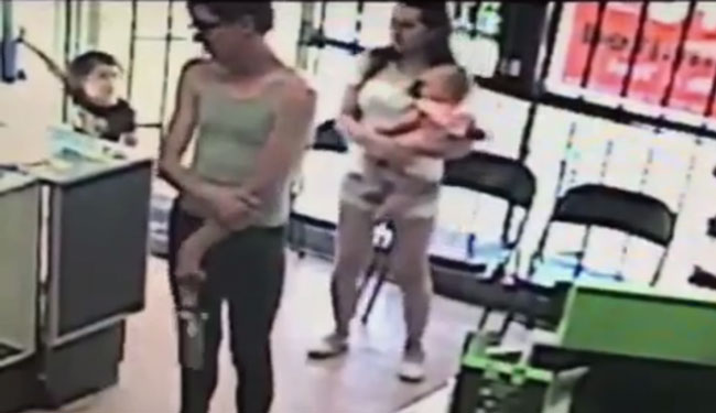 A mother entered a local store in Victorville, CA, the USA with her two children.