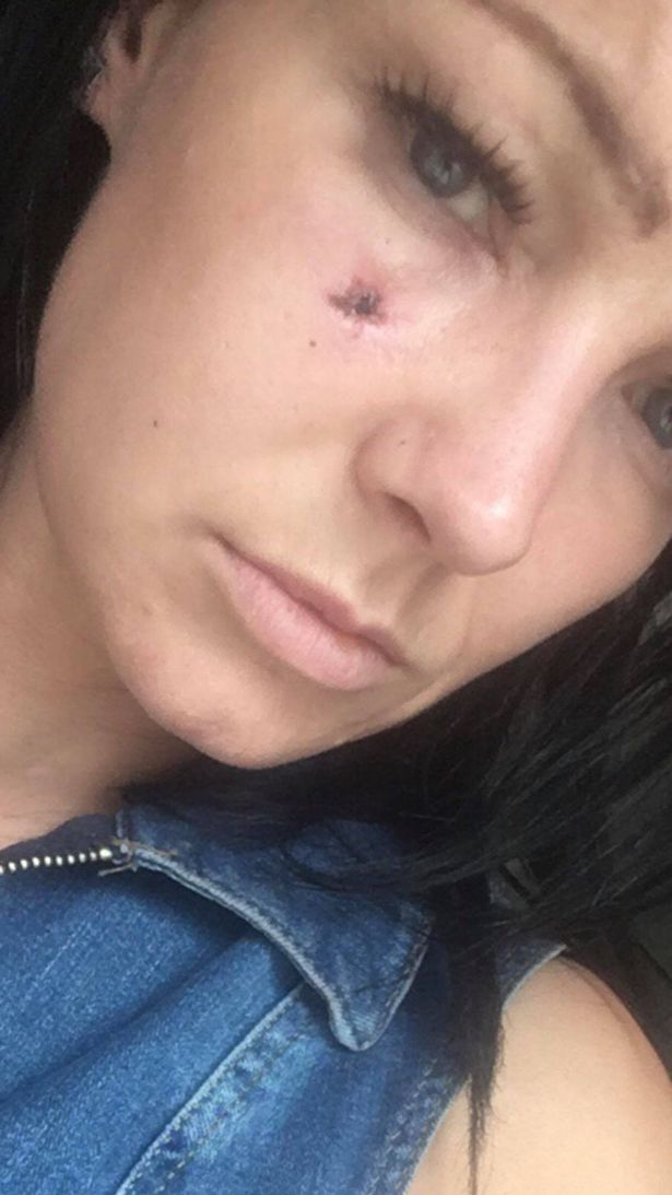 38-year-old Stacy Dolan suffered a deep wound to the left side of her face, swelling to her upper right arm, and a laceration on her left knee after the ‘revenge’ attack.