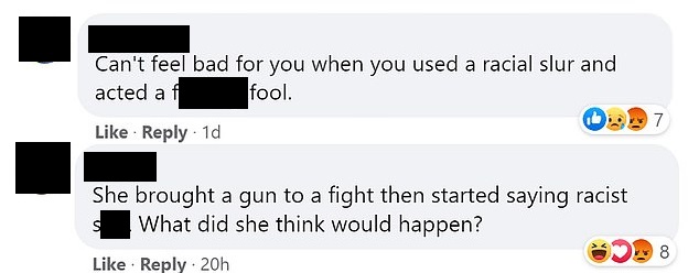 One person commented: “I can’t feel bad for a racist who used a racial slur. Now you’ll have plenty of time to think about your horrible actions.”