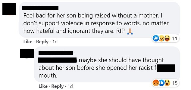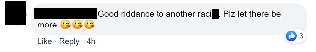 Another suggested the same thing should happen to others by saying: “Good riddance to another racist. Plz let there be more.”