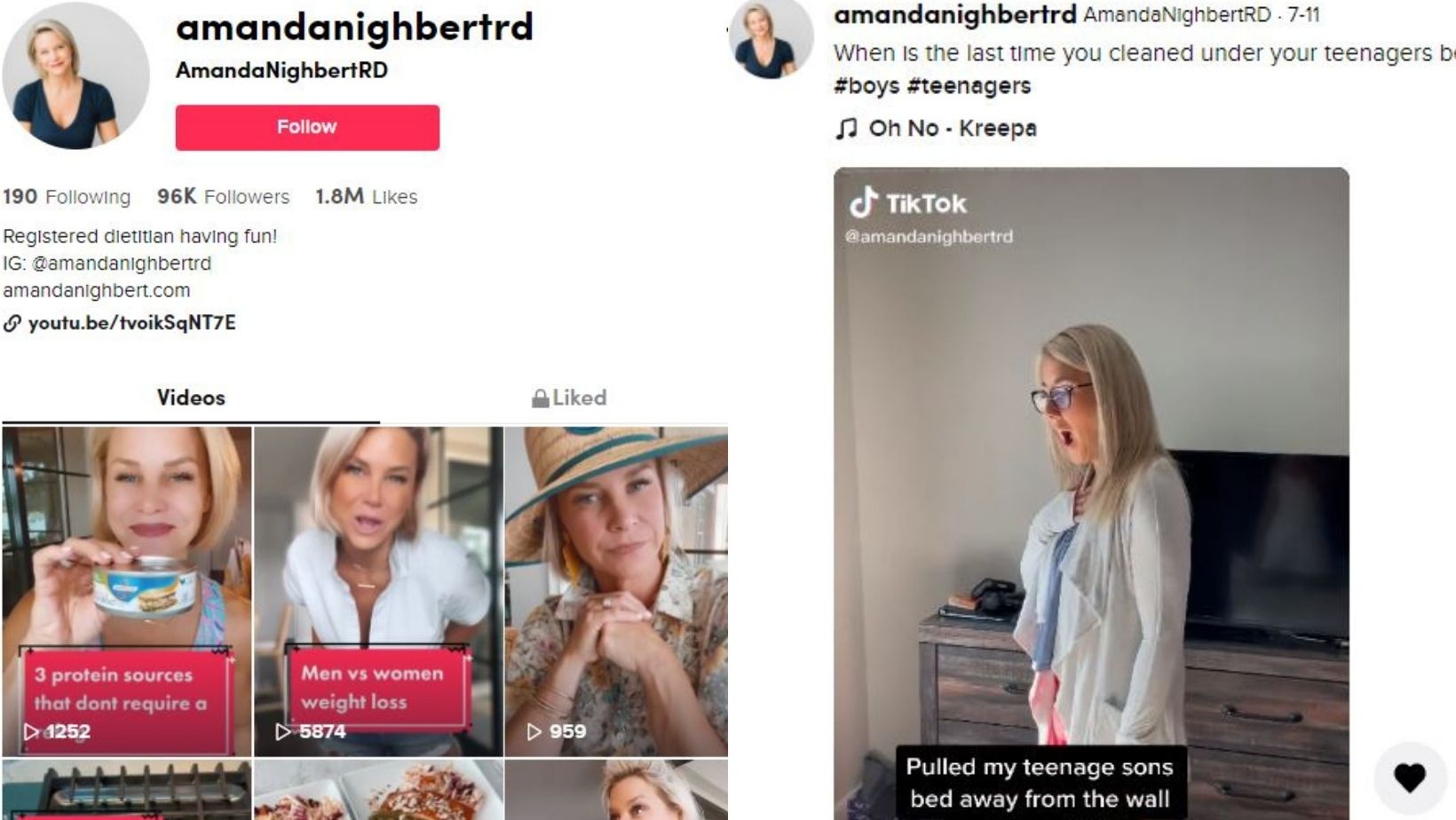 Amanda, a registered dietician, posted a clip under the name @amandanighbertrd and captioned it with: “When is the last time you cleaned under your teenager’s bed?!!”