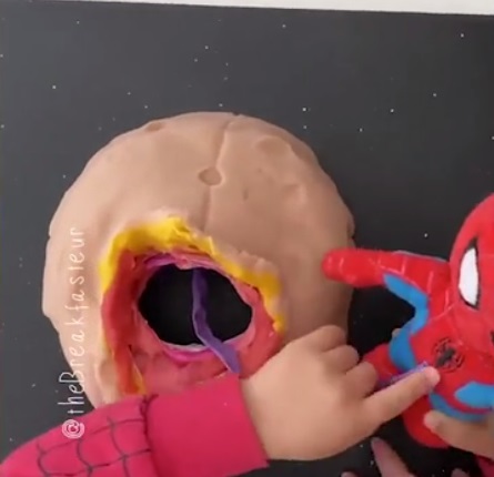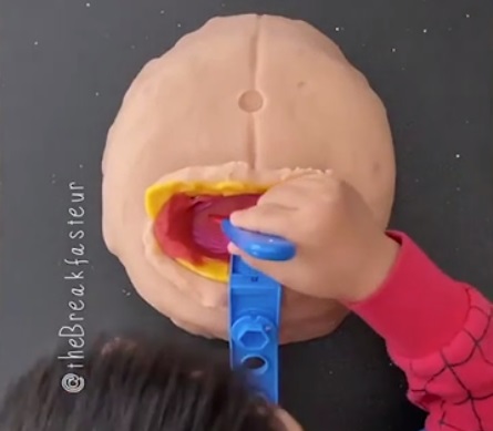 “Cesarean #playdoughsurgery for my kid’s 4th birthday,” the mother wrote in a caption of the video in which she and her son are seen cutting through Play-Doh to deliver a toy.