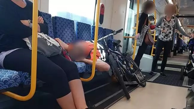 The incident occurred in Auckland, New Zealand, where a mum with a toddler was shocked to see a cyclist spreading over four seats without offering her a place to sit as she was standing on the train.