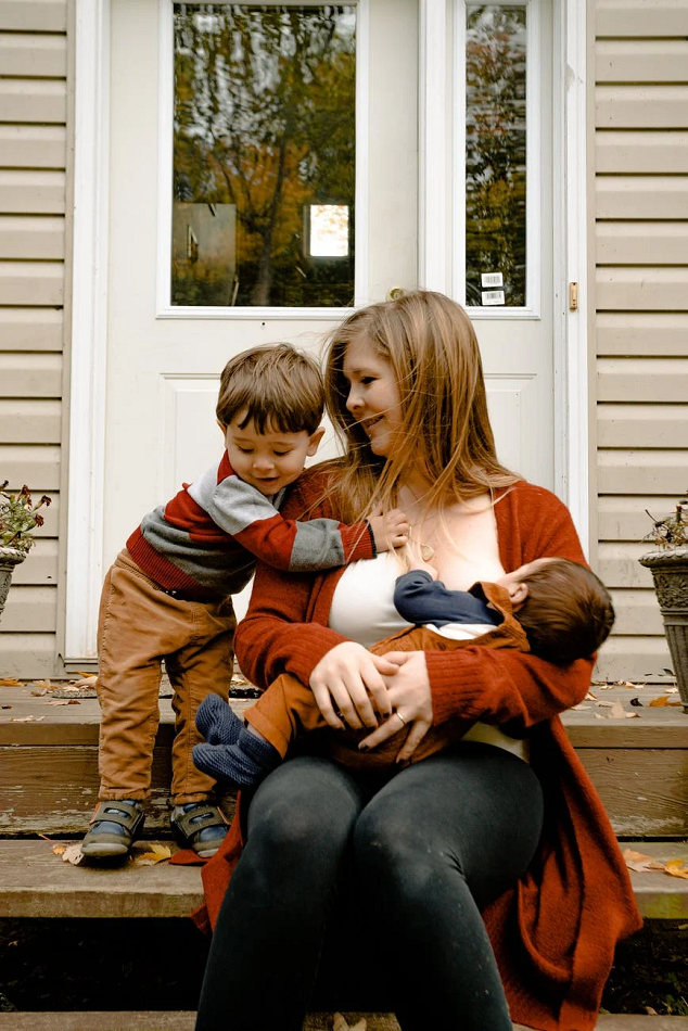 Her other son, 2, just sat patiently in his seat and helped alleviate the situation as her baby became upset due to a possible allergy or intolerance.