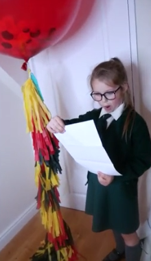The mother then gave the little girl a knife and asked her to burst the balloon. She does it and confetti comes out of it. It made Ella happy but there was something more.