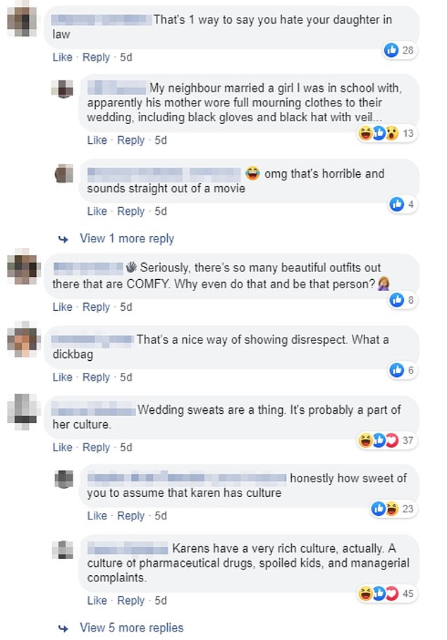 “OMG!!! Y’all I am in absolute shock that I just attended a gorgeous (And expensive) wedding which then turned into a WTF! Yes that is [the] mother of the groom in sweats,” the US-based wedding guest wrote in her post.