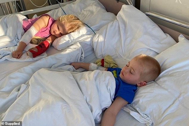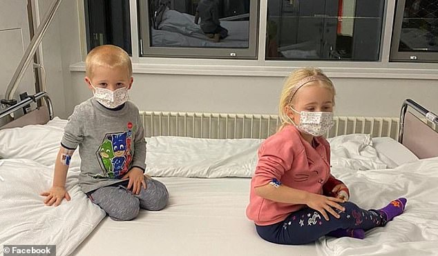 Bettina Rowley shared a picture of her kids – five-year-old daughter Charlotte and three-year-old son Frederick – in a hospital bed in Munich, Germany after they tested positive for COVID-19.