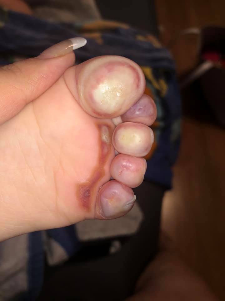 She shared photos on Facebook to warn others about the jelly sandals that left her daughter’s feet with third-degree burns.