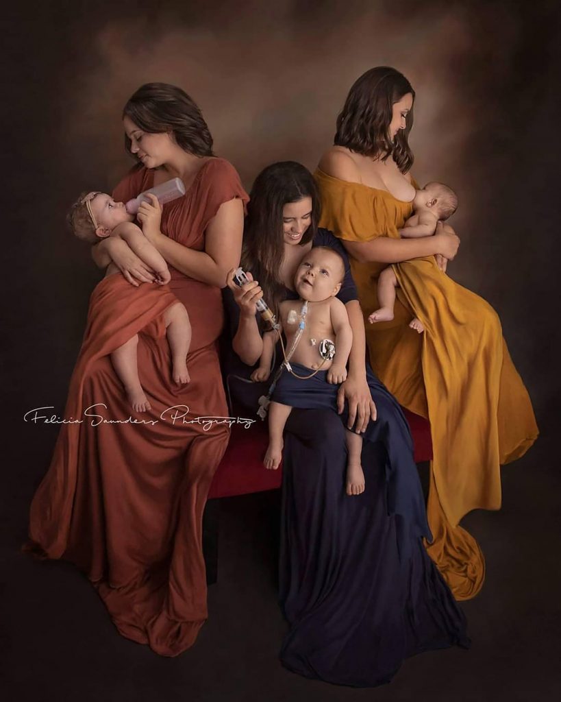 A photographer named Felicia Saunders photographed three mothers feeding their babies with bottles, by breast, and through a tube on National Breastfeeding Month in August.