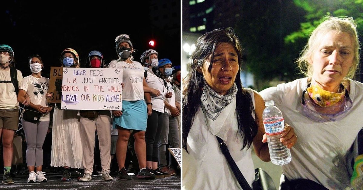 Despite being teargassed by the authorities, the group of moms returned the following day, on Sunday, to stand between protesters and federal officers once more.