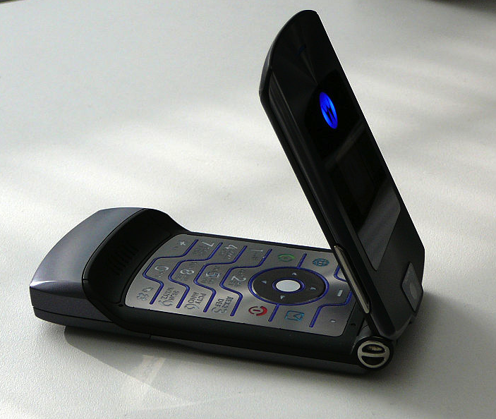 The original Razr had a small LCD display unit on one side of the hinge and a physical twelve key keyboard on the other. The phone folded around the middle to get into a size easy to carry in pockets.