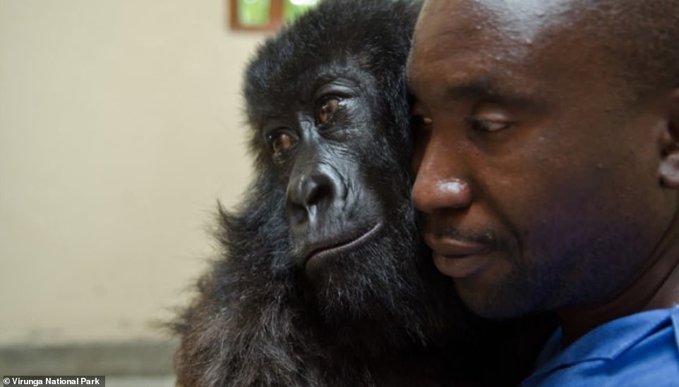 Named Ndakasi, the gorilla rose to instant viral fame after her image with Bauma went viral on social media. She was pictured with another fellow orphan gorilla named Ndeze in the year 2019.