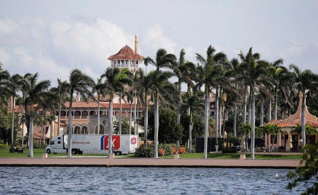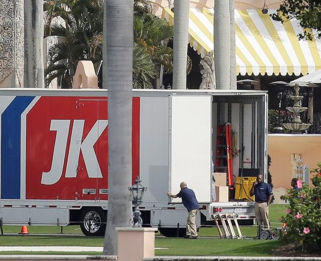 On Monday, two Sterling trucks parked in front of Trump’s property and large boxes were carried into the club.