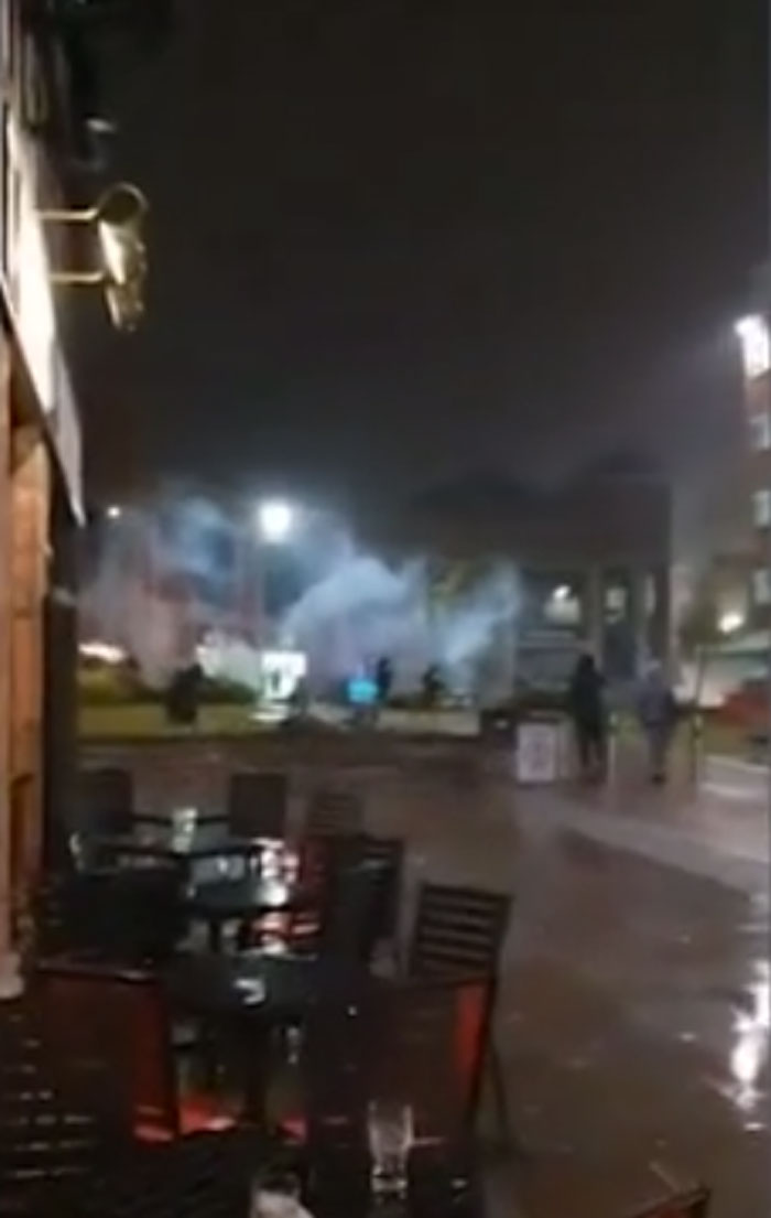 A witness said: “They were going at it for hours and there were customers inside a bar close by who were trapped and could not leave. Everyone feared getting hit and the youths didn’t seem to care which direction the fireworks travelled in.”