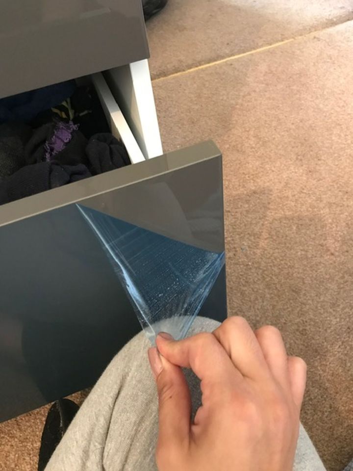 As per Kayleigh, she was vacuuming her house just like every other day, and when she got near the cabinet, she thought of removing the white visible protective film from the top of the drawers.