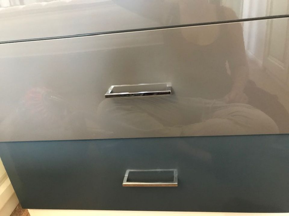 With almost three years of disappointment with the color of her cabinet, a mom from Stevenage, Hertfordshire was left awestruck when she finally removed the protective film of the cabinet to find out threat the color of her cabinet is not blue.
