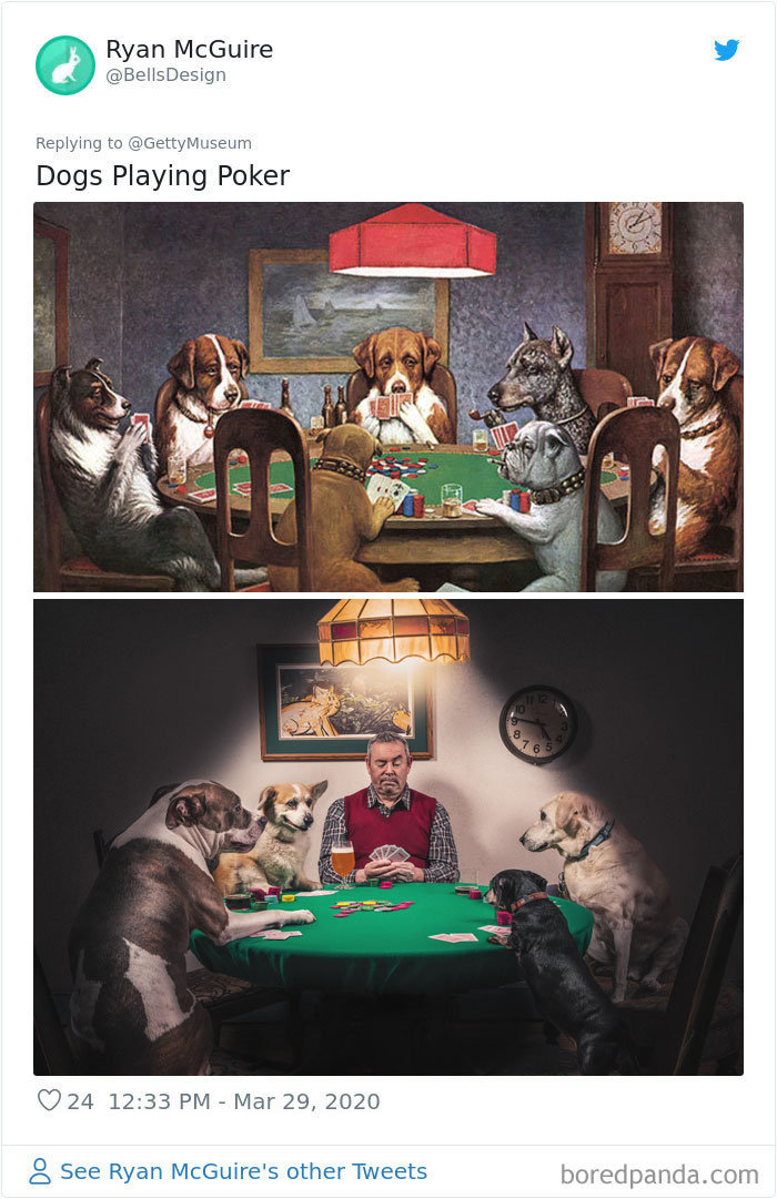 “We challenge you to recreate a work of art with objects (and people) in your home,” Getty wrote on twitter. The rules are very simple: choose your favorite painting, select three things around your home, then recreate the art with those objects.