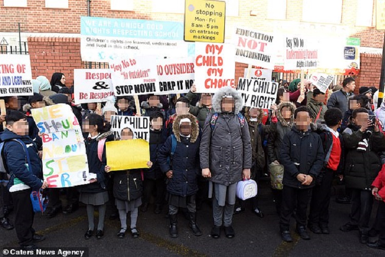 Parallels were drawn to a protest in Birmingham where roughly 600 Muslim children were withdrawn from a school because of lessons about homosexuality and gender equality.
