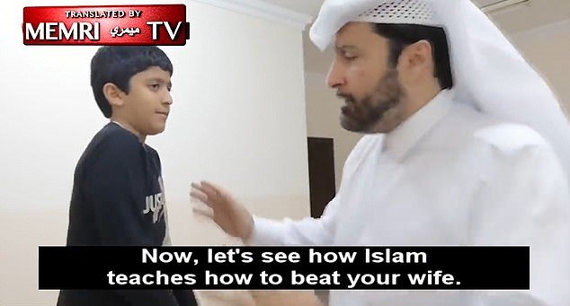 “Now, let’s see how Islam teaches how to beat your wife. Let’s imagine that Nayef here… Nayef is obviously a boy, but let’s imagine that he is the wife. How should a husband beat his wife?