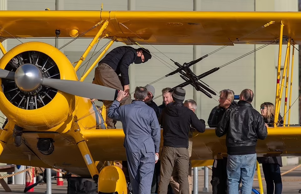Taking to Duxford Aerodrome in Cambridgeshire to film a Mission Impossible 8 scene in which he is flying a World War II plane, the Hollywood star was seen wearing cargo pants, a padded jacket, and a hat.
