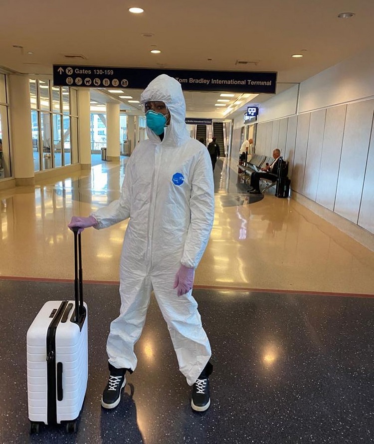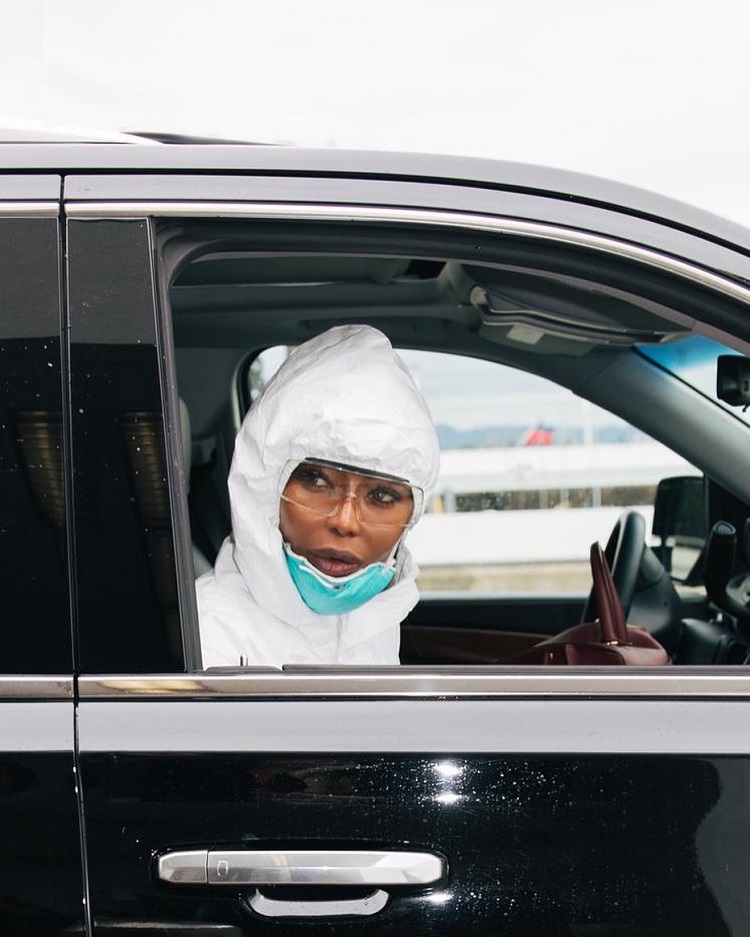 And Naomi Campbell, for one, is certainly taking the threat of coronavirus infection seriously. At least, showing up in a full hazmat suit and mask at the airport seems to say so.