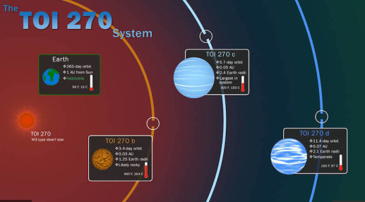 They were orbiting a star named TOI-270, which is an old M-dwarf star. The three planets that have been found are the nearest the scantiest have ever found of the smallest size.