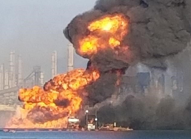 The ship’s owner said there were 18 people at the site when the blast occurred.