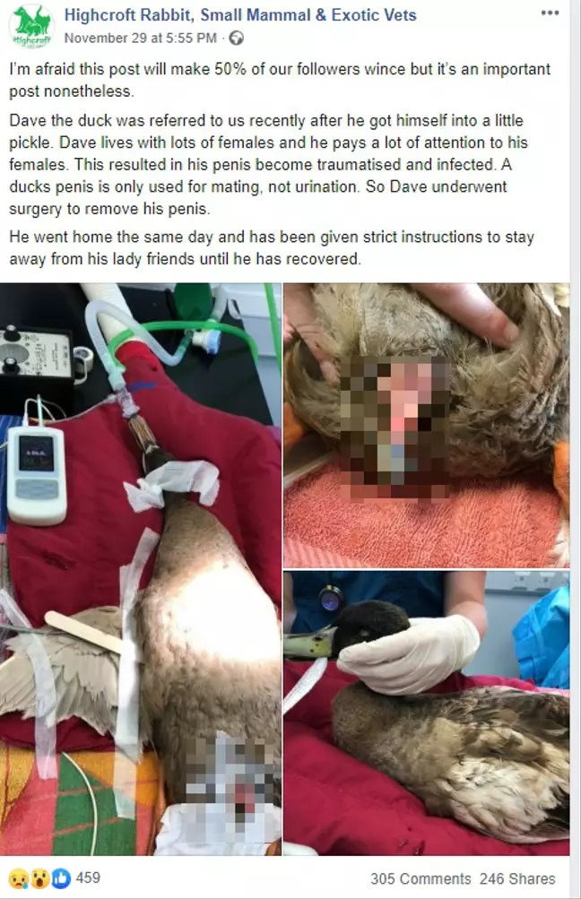 A horny duck named Dave was forced to undergo a life-changing surgery after its reproductive organ became “traumatized” due to the animal mating with multiple females over ten times per day.