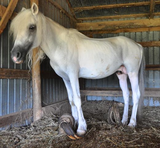 “Quest came to Days End in 2015 suffering from severe hoof neglect. He was locked in a stall for 10+ years and his hooves grew over 3 feet in length,” they wrote.