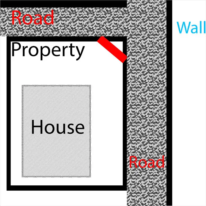 “Our property line is kinda like a square and it is surrounded by road from two sides. Keep in mind that on one part of the road we let our neighbours use 1 square meter of the land so they could use the road safer and not damage our property.”