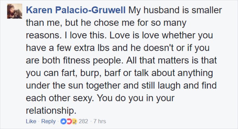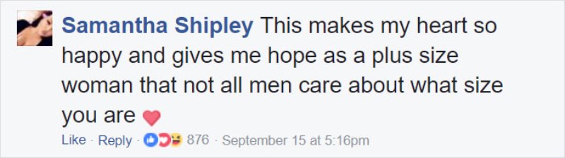 “This makes my heart so happy and gives me hope as a plus size woman that not all men care about what size you are,” one person commented.