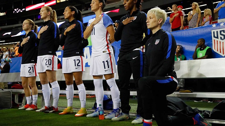In response, the United States Soccer Federation said in a statement: “Our national anthem is an opportunity … to reflect upon the liberties and freedom we all appreciate in this country. As part of the privilege to represent your country, we have an expectation that our players and coaches will stand and honor our flag while the national anthem is played.”