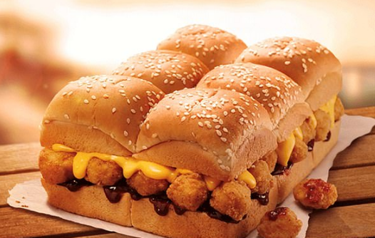 The sandwich that has chicken poppers in between for the filling oozes cheese and barbeque sauce and will only cost you $9.95.