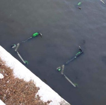 This was when he began thinking about things that clearly did not belong in nature. Considering that he hates the scooter-share business, Lime scooters in the river seemed like a perfect option.
