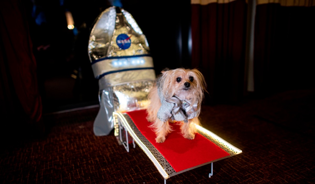 We saw another dog with a NASA-themed spaceship, complete with a red carpet (the first dog on the moon, we bet). The event also included three runway shows: Sci-Fi Couture: 2020 A Space Odyssey, Haute Couture: High Fashion for Animal Rescue and Best in Show.
