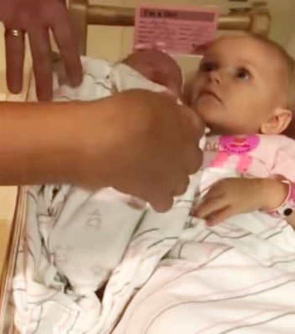 Newborn kids are fragile and anything can easily give then an injury. Henley might have understood that and that is why she kept her guard up. The newborn was tucked in her bed covered up in a quilt. Henley was snuggling with the little baby sister when the woman asked Henley if she could take her sister and Henley quickly said a no by shaking her head.