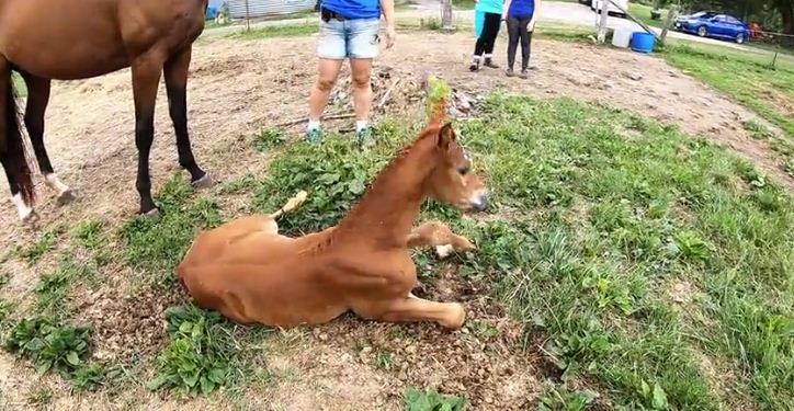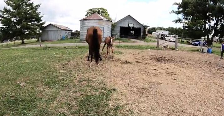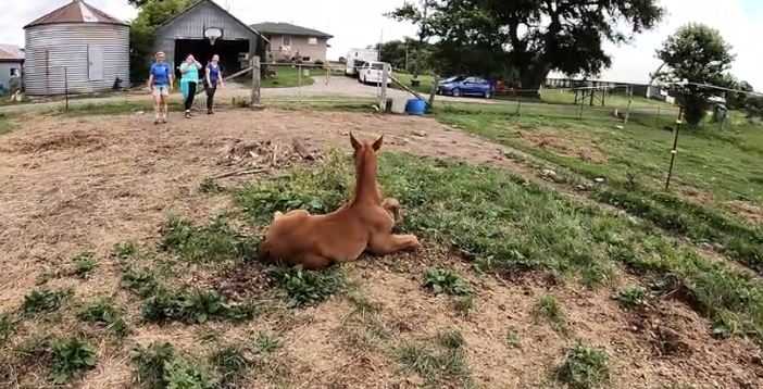 The man recording the video and others on the farm were laughing at first but as soon as Felix fell, everyone stopped laughing and the man with the camera asked if he was ok.