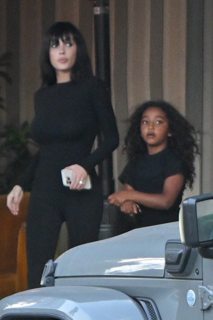 Censori went with the legging-style black pair that clung to her curves and hit right below the knee.