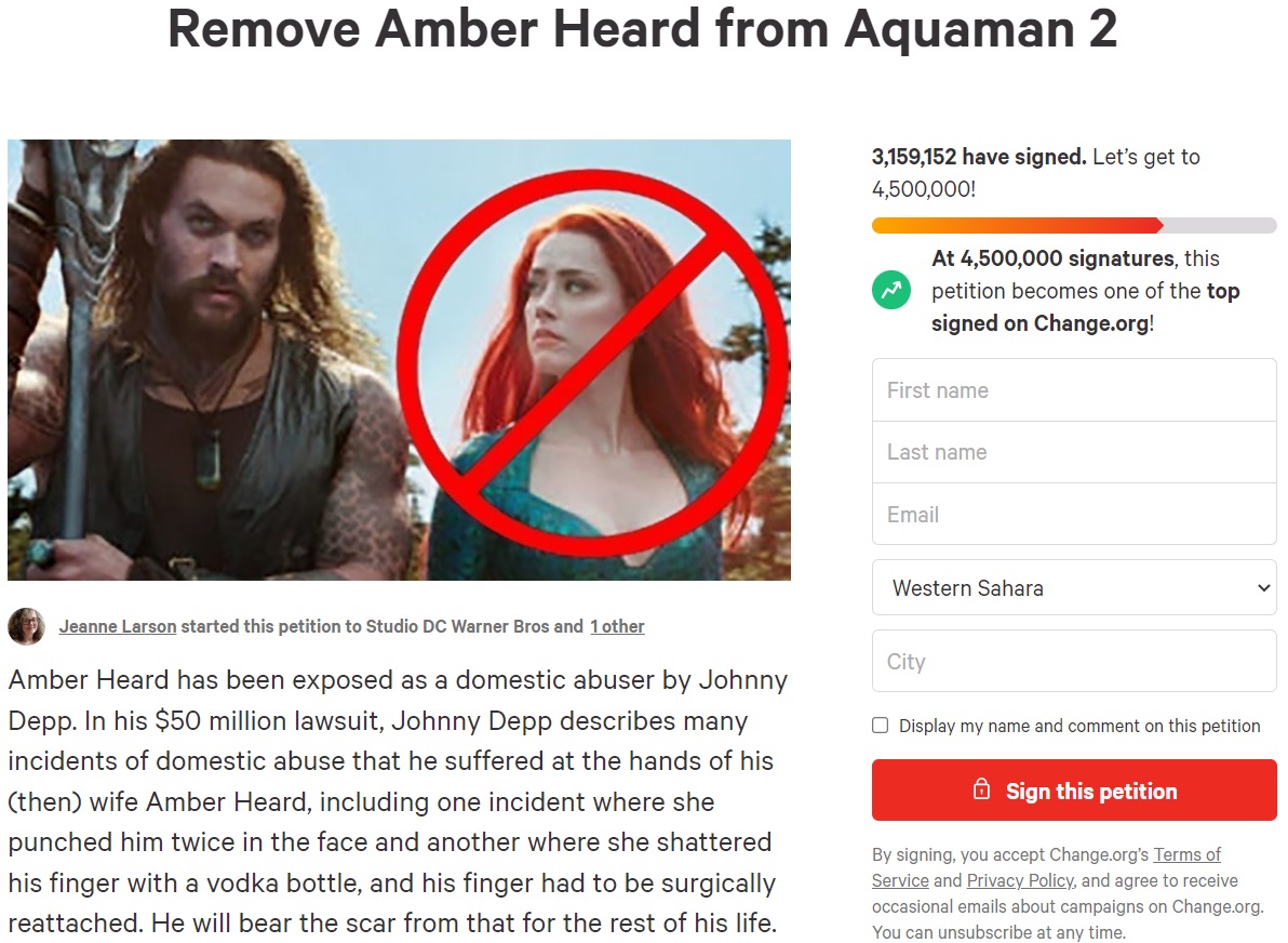 More than three million people have already signed the petition to remove Aquaman star Amber Heard from the movie’s sequel.